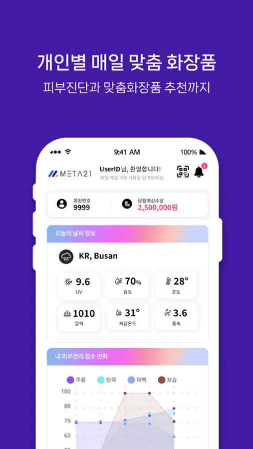 자신의 피부를 진단해볼수있으며 분석결과를 지속적으로 확인할수있습니다. 또한 피부분석을 바탕으로 나에게 맞는 화장품을 추천 받을수있습니다.
