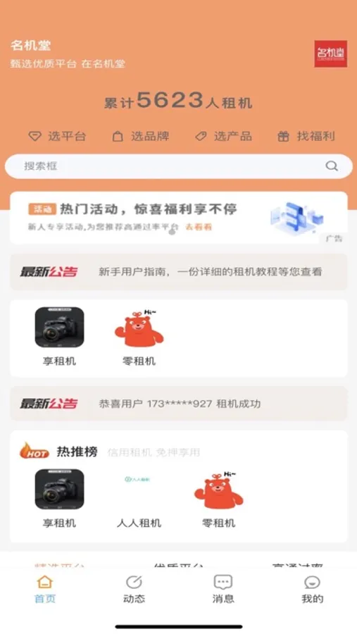名机堂APP是一个全面完整的租赁信息平台,汇聚租手机、租电脑、租相机。