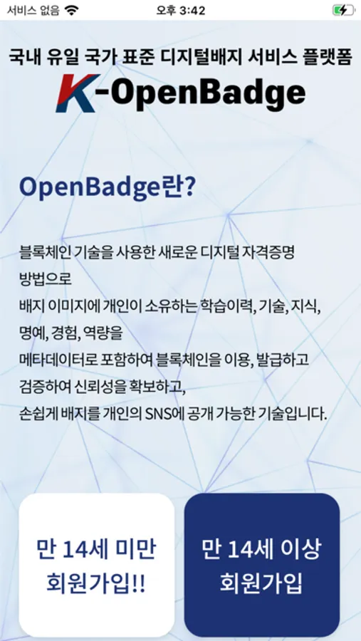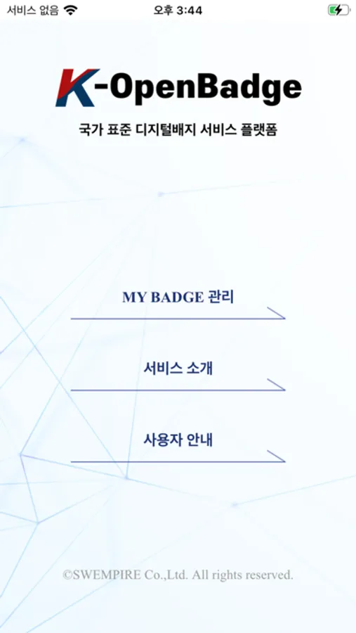'오픈 배지(openbadge)', '디지털배지(digitalbadge)', '간편 인증'을 위한 디지털 배지 지갑 앱으로 블록체인 전문기업인 소프트제국(swempire)이 산업통상자원부의 연구과제로 선정/지원받아 개발한 국제표준규격 오픈배지 서비스 플랫폼으로 글로벌 상호운용성을 확보한 한국형 오픈배지 서비스입니다.