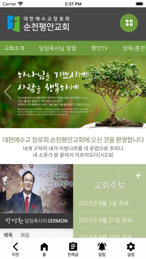 * 100% 연동형 앱 : 홈페이지에 등록된 내용, 게시물, 설교영상, 사진 등의 콘텐츠를 앱과 100% 연동하여 실시간으로 앱을 통해 확인할 수 있습니다.