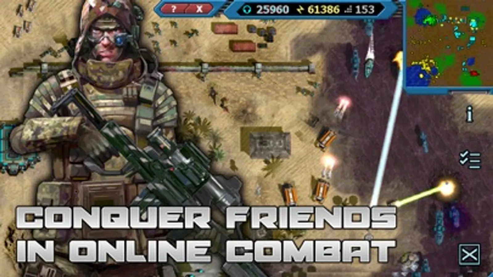 "This game is epic" - iDownloadBlog "Easily one of the smoothest playing RTS experiences that can be had on the iPhone" - 148Apps Play 21 campaign missions with an intriguing story in this real time strategy game, build over 130 different types of units and technologies, enjoy unlimited random map skirmishes with many customizable settings, dominate in network multiplayer with friends!