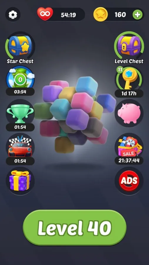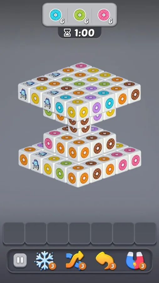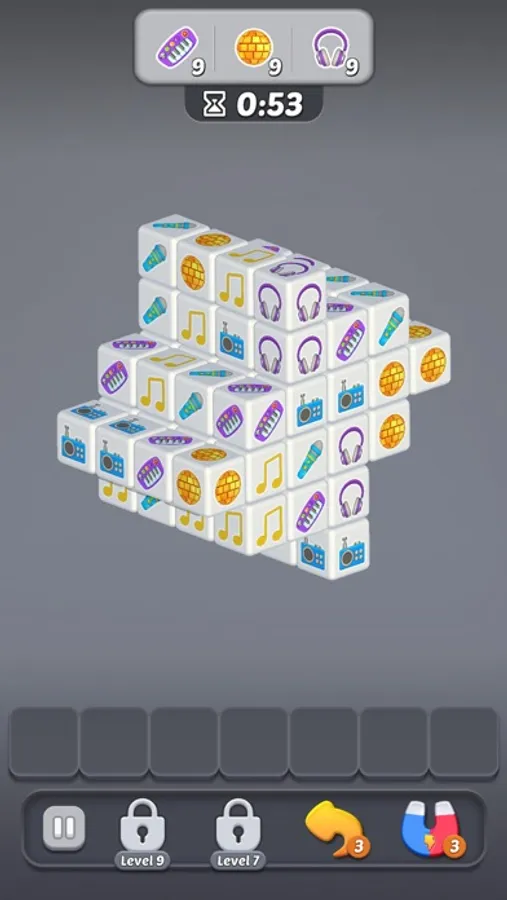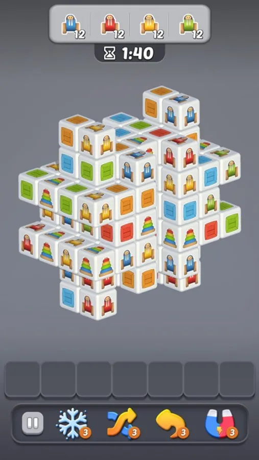 Match Cube 3D is a fun and challenging cube game. Your goal is to rotate the 3D cube, find three identical tiles, and clear them to complete all the targets. Have a blast matching 3D tile cubes and earn great rewards!