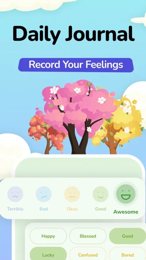 - Plant cute trees in your Mood Forest. Don't forget to water them, or they will wither :(