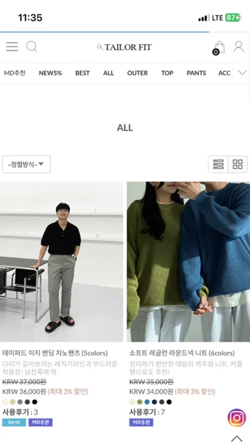 20-30대 남성들을 타겟으로 의류를 판매하고 있는 테일러핏이라는 쇼핑몰입니다.