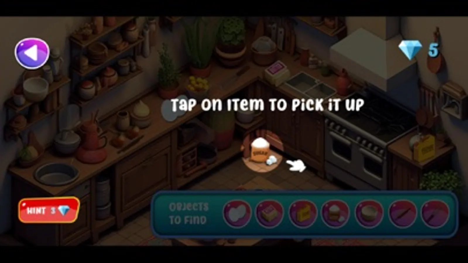 Step into Grandma's cozy kitchen, complete with vintage wallpaper and a warm fireplace. Your mission is to find essential ingredients like eggs, flour, butter, sugar, a whisk, a rolling pin, and a mixing bowl. Combine them to bake a mouthwatering apple pie and unlock the next level.