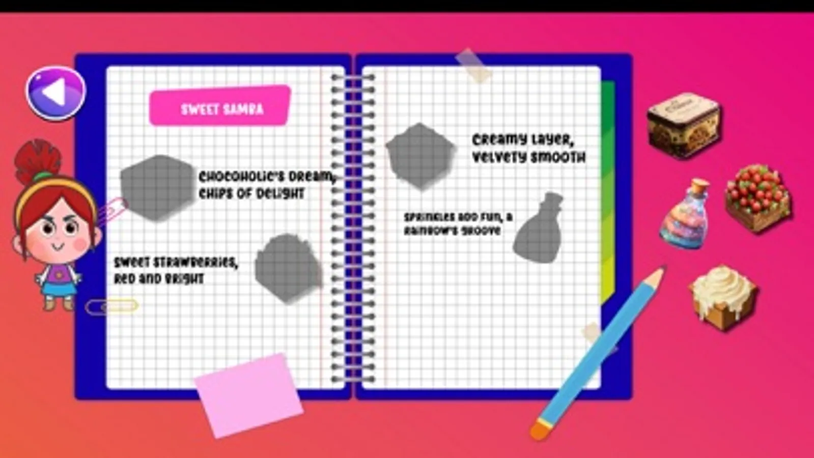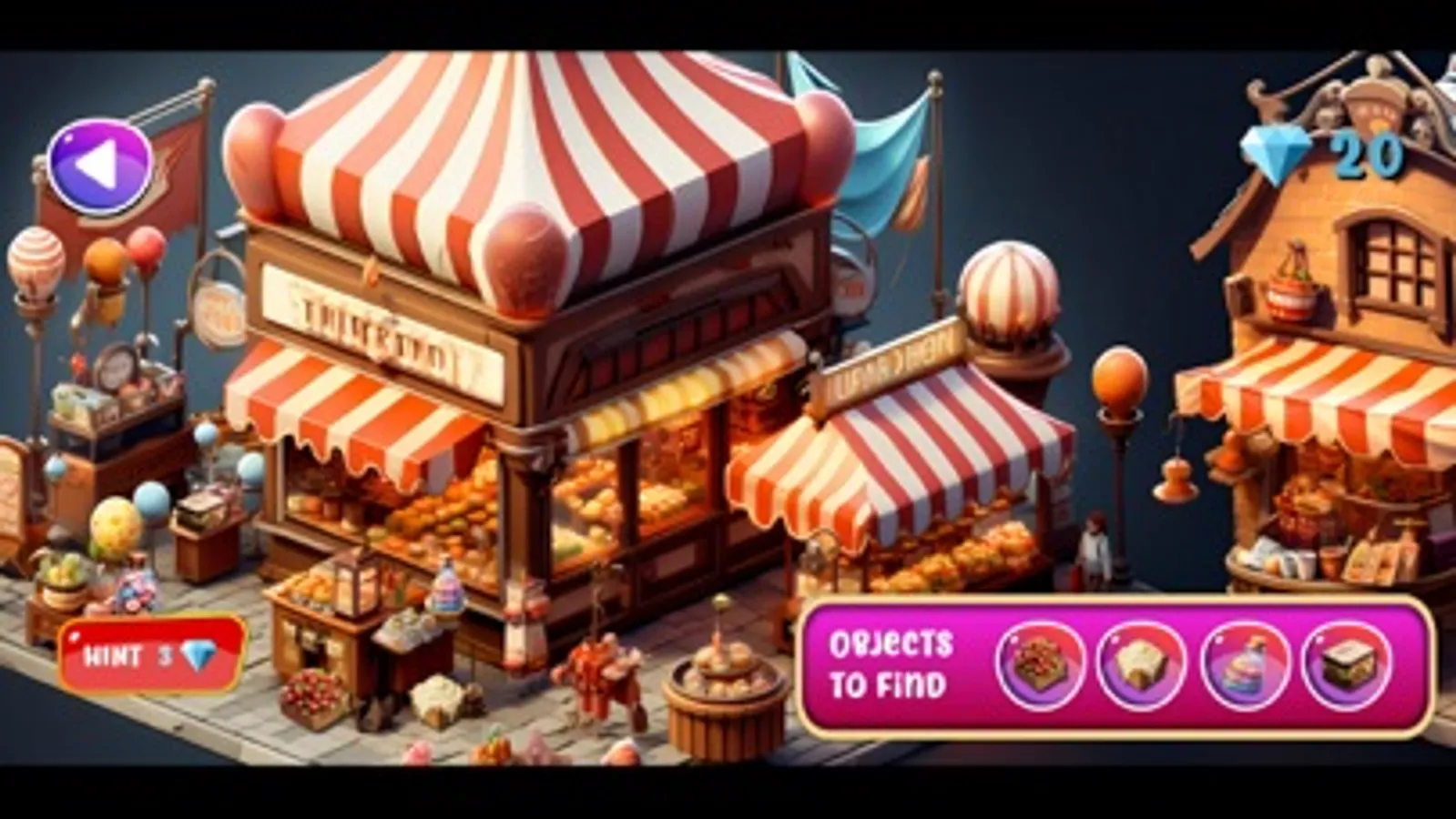 Navigate through a bustling dessert bazaar filled with cupcakes, macarons, ice creams, and chocolate fountains. Hunt for chocolate chips, strawberries, cream, and colorful sprinkles to concoct a delectable chocolate strawberry trifle. Your sweet journey continues.