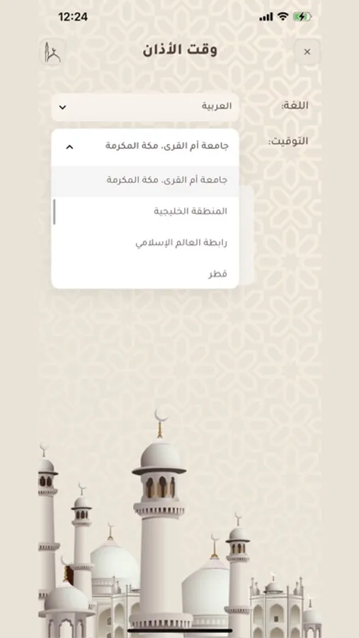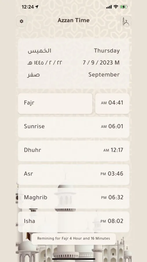 Upon the app's first installation, the user will be prompted to enter their city of residence. The user can also input their country for a more accurate location determination. Based on the specified location, the app will display the corresponding prayer times.