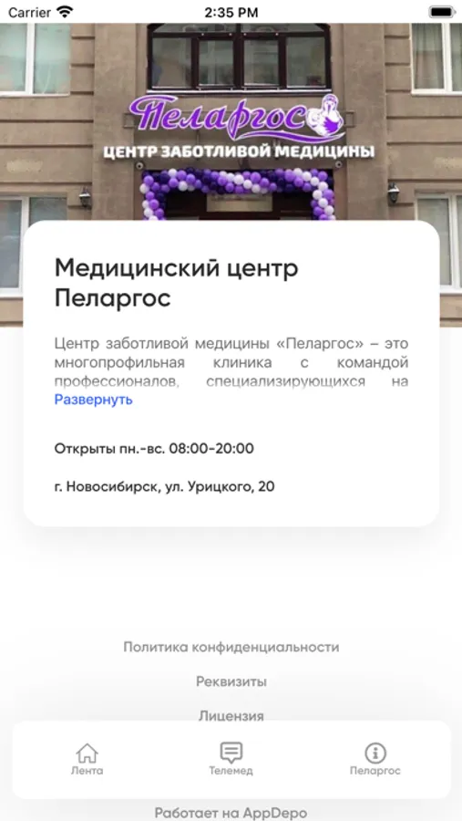 Приложение Пеларгос позволяет получить онлайн консультацию врачей центра семейной медицины "Пеларгос"