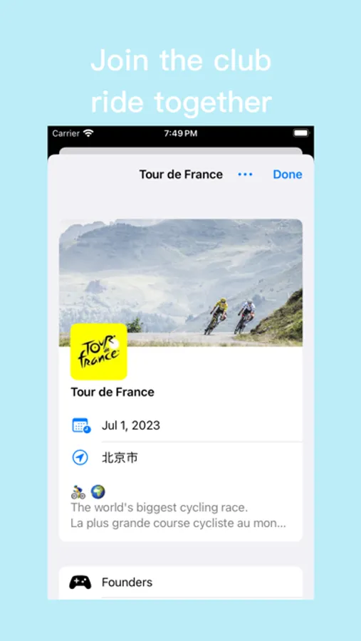 Yiqii is an application related to cycling events. On Yiqii, you can join your favorite cycling clubs and participate in the cycling events organized by these clubs.