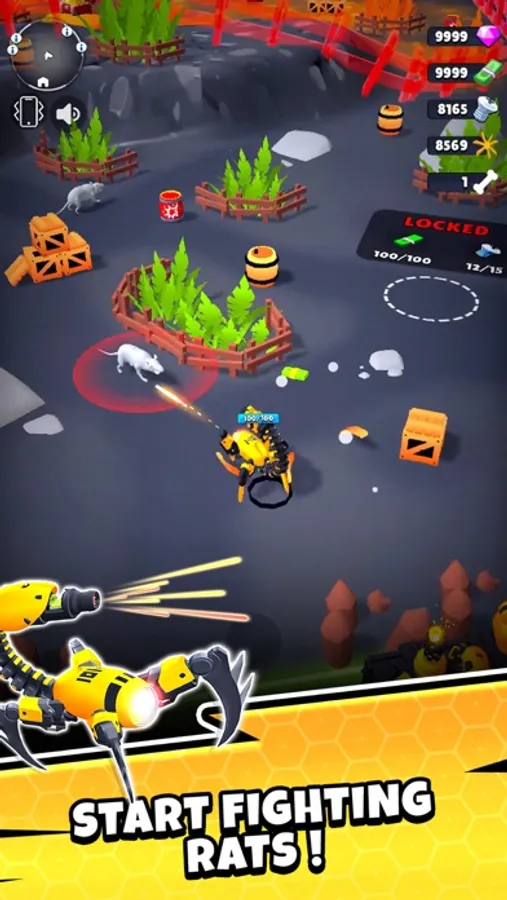 Collect & Upgrade: While on your rat-slaying adventure, gather valuable money and glittering gems. Use them to unlock new zones, buy futuristic weapons, and upgrade your trusty robot companion. Customize your robot with cool, eye-catching designs.