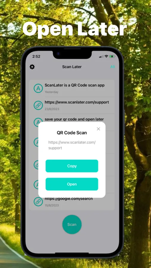 Scan Later gives you a chance to scan code now and open later, even if you don't have the QR code anymore, and you needn't take QR code as photo anymore.