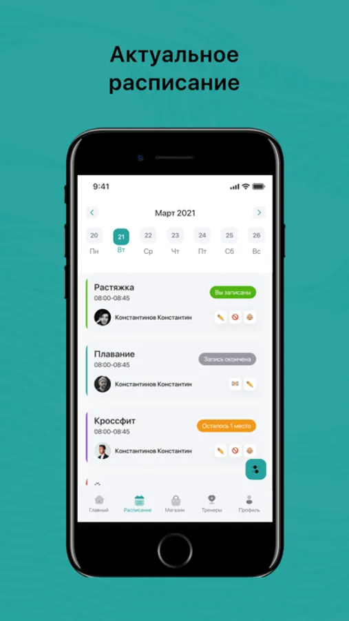 - Посмотреть актуальное расписание тренировок;