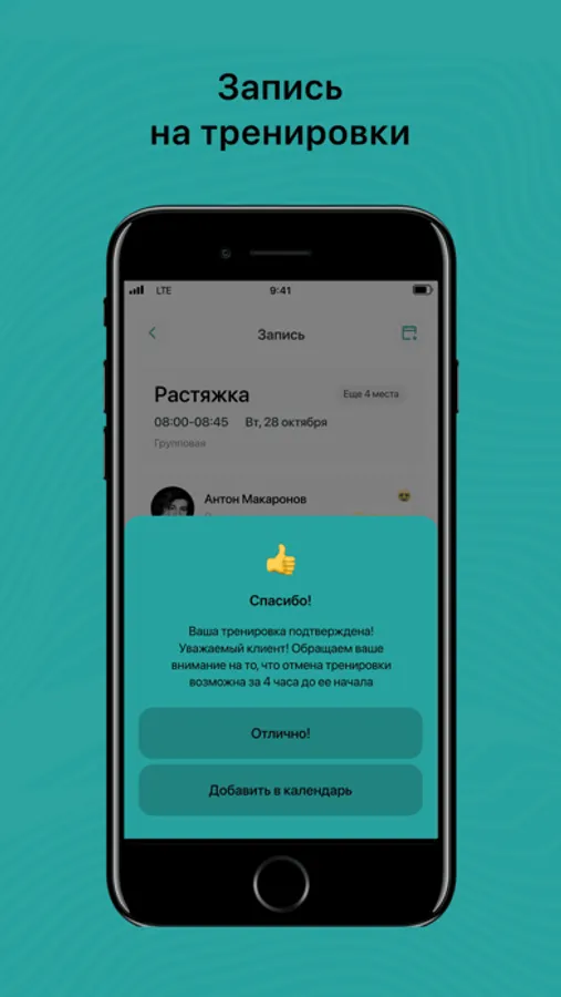 - Записаться на групповые тренировки;