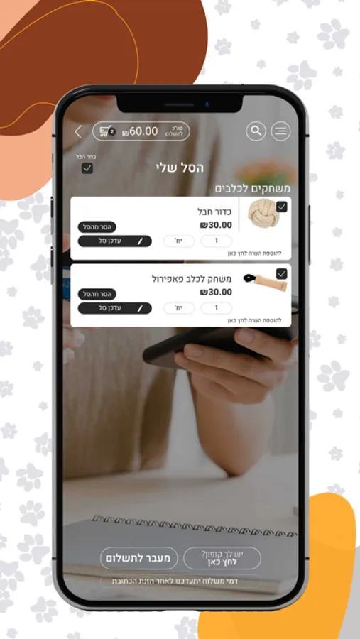 ניתן לבצע הזמנות ומשלוחים ישירות מהאפליקציה טייגר מזון וציוד לחיות מחמד.