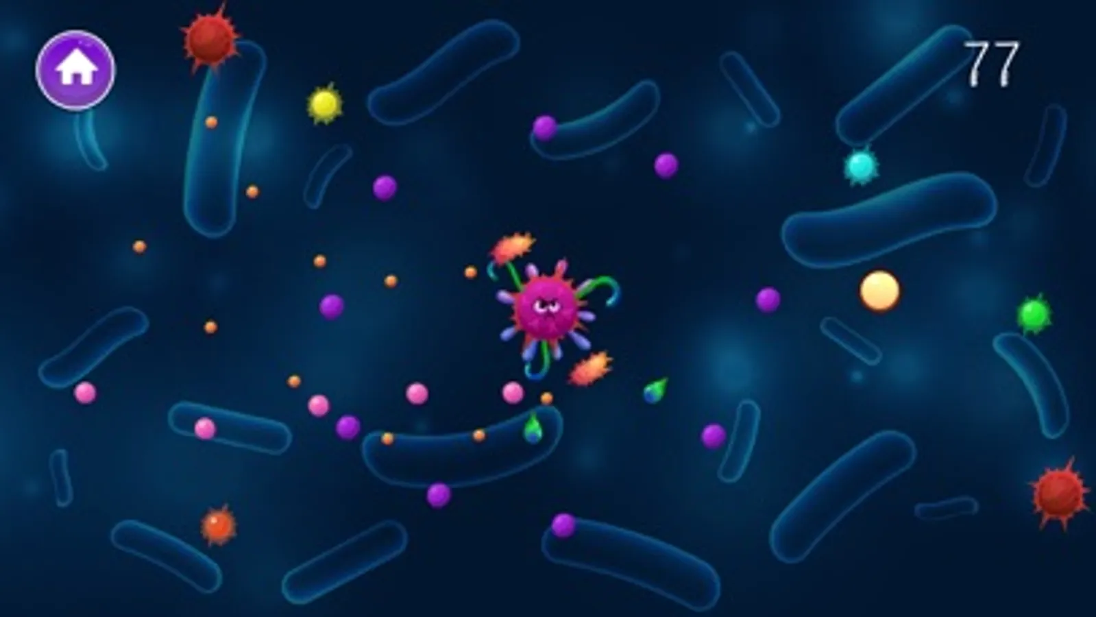 - **Virus Evolution**: Every 20 seconds, the viruses evolve, combining different genetic codes and becoming more menacing. You have the crucial task of choosing one of two transformations for the virus while watching your score multiply with each choice (x2, x3, x4, x5) after each evolution.