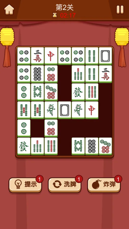 游戏规则简单,玩法富有挑战难度。玩家需要找出2个相同的麻将,将他们滑动到同一竖行或者横行匹配点击消除。