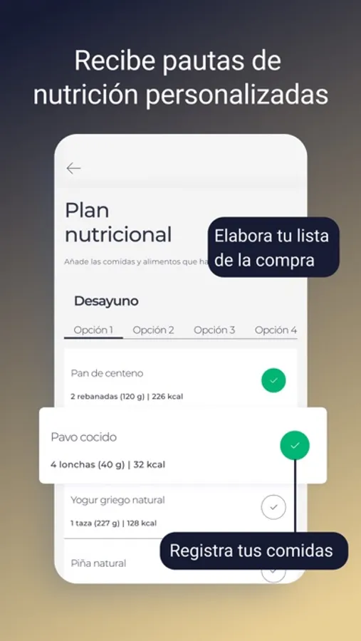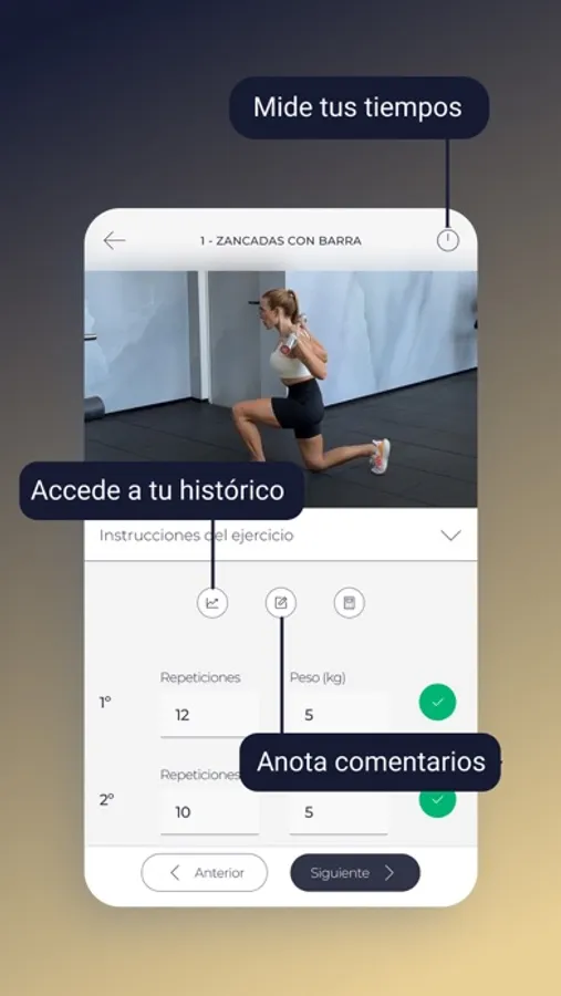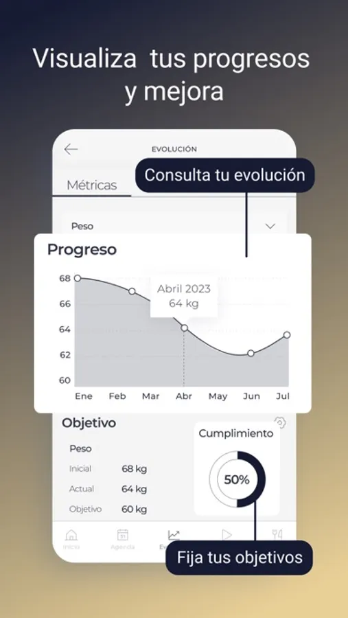 Recibe tu plan nutricional 100% personalizado y tus sesiones de entrenamiento diarias que te llevarán a conseguir tu objetivo. Registra tu progreso para que Claudia y su equipo ajusten tu programa según avanzas.