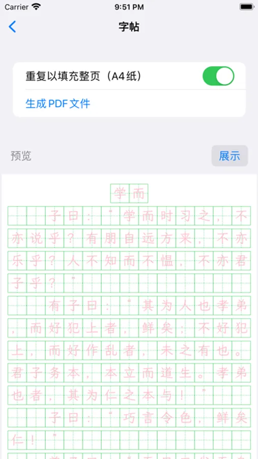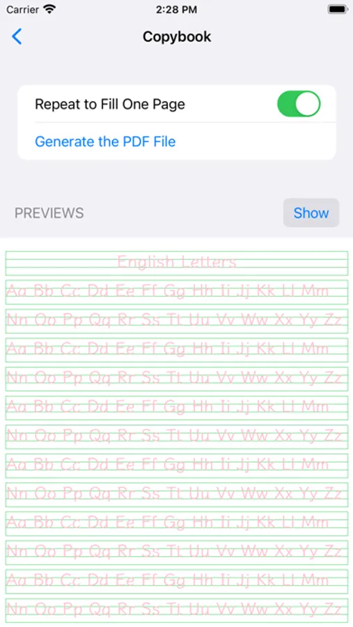 Practice your handwriting skills on grid or lined paper. You can generate your own content and export it as a PDF file for printing.