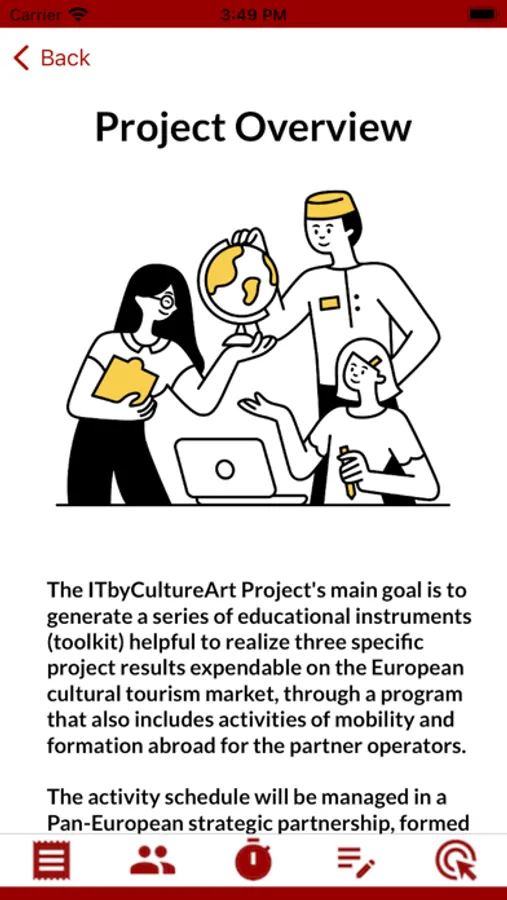The ITbyCultureArt Project's main goal is to generate a series of educational instruments (toolkit) helpful to realize three specific project results expendable on the European cultural tourism market, through a program that also includes activities of mobility and formation abroad for the partner operators.