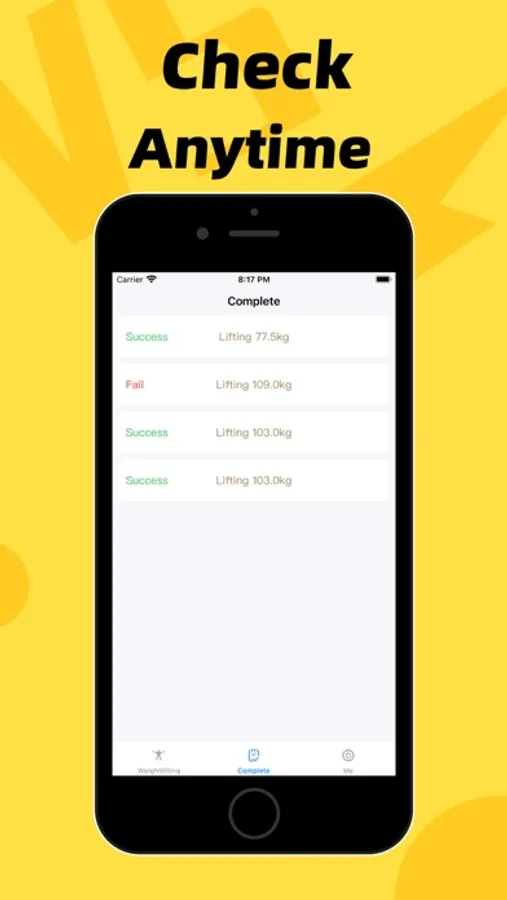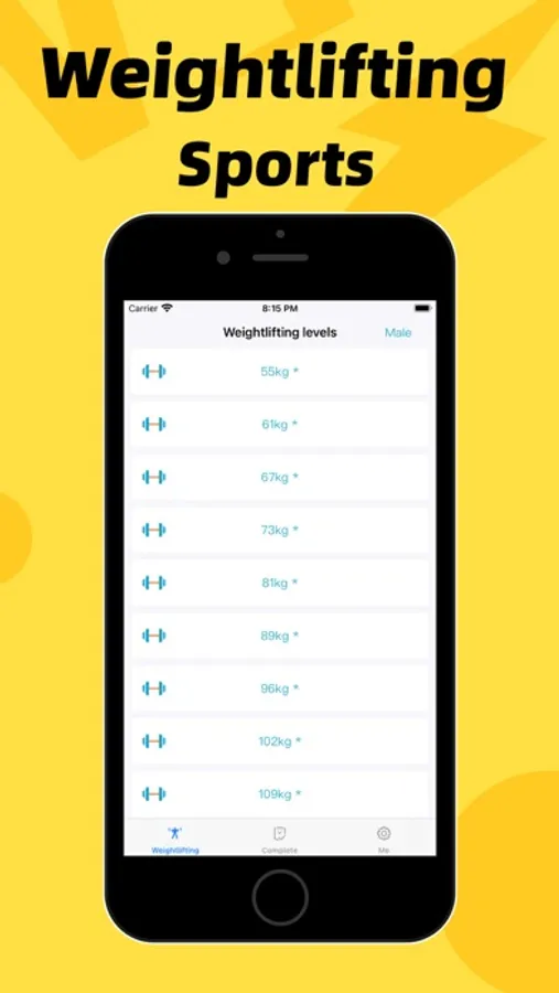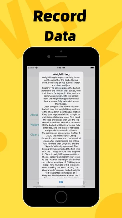 A software that records weight lifting data, including 9 weight levels. Each basic level can be customized to increase weight, while confirming whether the current weight has been completed and saving the results locally.