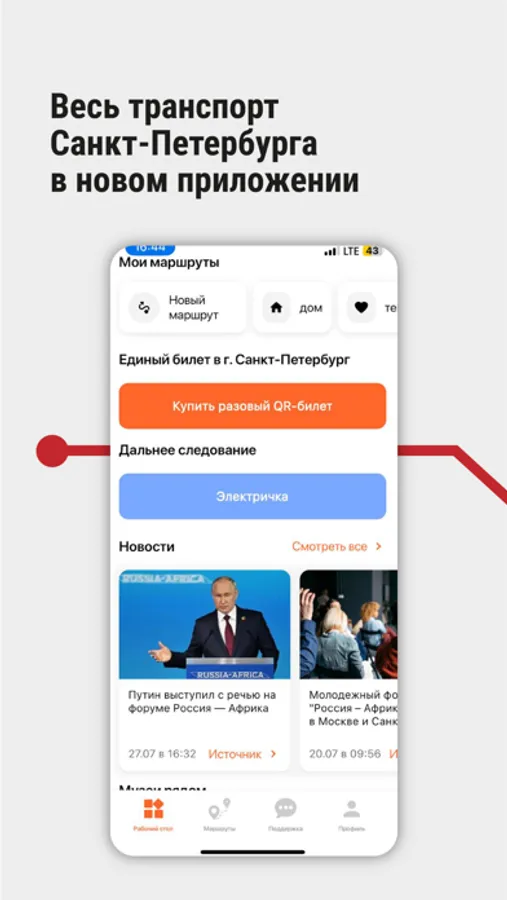 «Транспорт+» – ваш личный помощник в поездках на общественном транспорте Санкт-Петербурга. Стройте мультимодальные маршруты с учетом всех видов наземного транспорта, метро, электричек и пешеходных дорожек – выбирайте самый подходящий. Покупайте билеты в приложении, каждый пятый из них – «счастливый»! Следите за актуальным расписанием и движением транспорта в реальном времени. Прокладывайте маршруты до ближайших музеев и читайте новости.