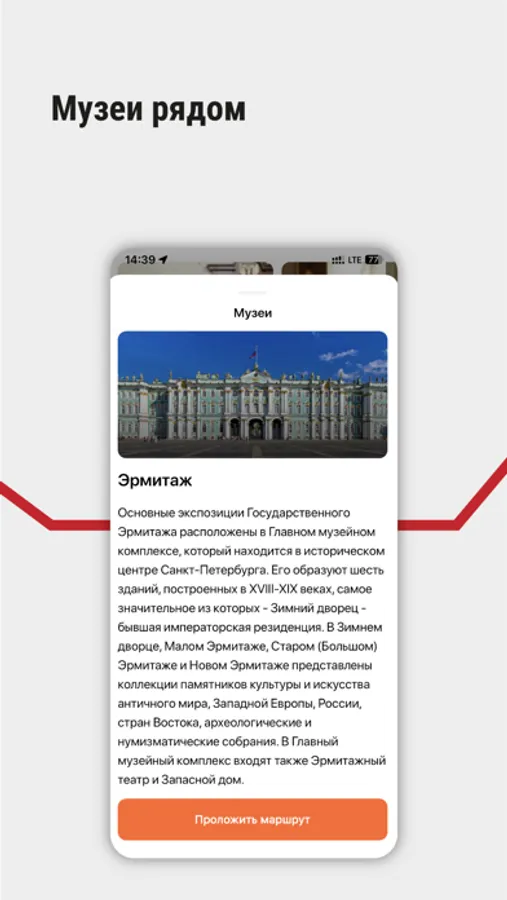 Выбирайте из списка музей, который хотите посетить, и прокладывайте к нему маршрут.