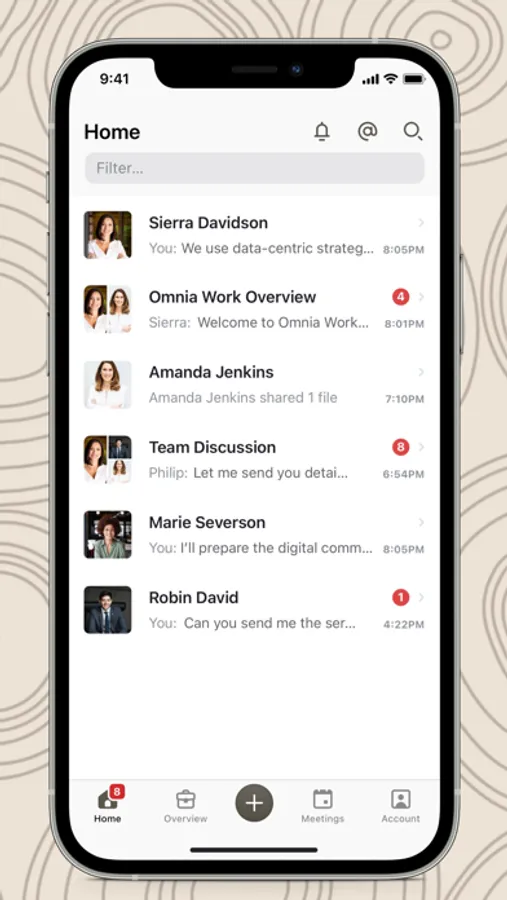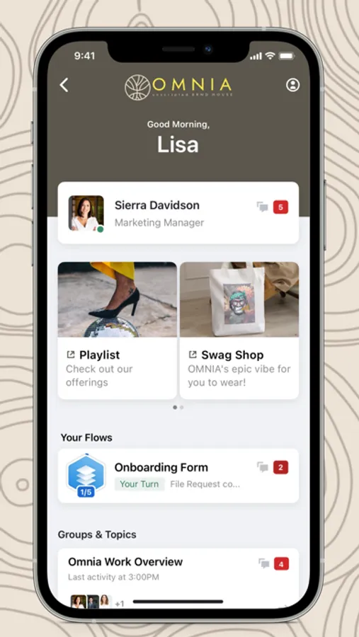 With the OMNIA BRND app, you can easily access a variety of features to help you perfect your brand voice. These features include easy file sharing and real-time feedback for streamlined collaboration as well as task creation, task assignment and deadline setting for efficient task management. Additionally, our app enables structured communication so you can stay connected with our team of professionals through one on one or group messages and meetings while exploring numerous possibilities for enhancing a strong brand presence - all through one simplified app.