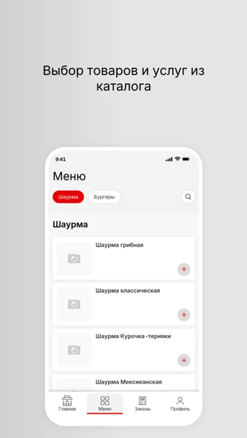 А также в меню: Бургеры, Шаурма, Хот-Доги, Салаты, Закуски
