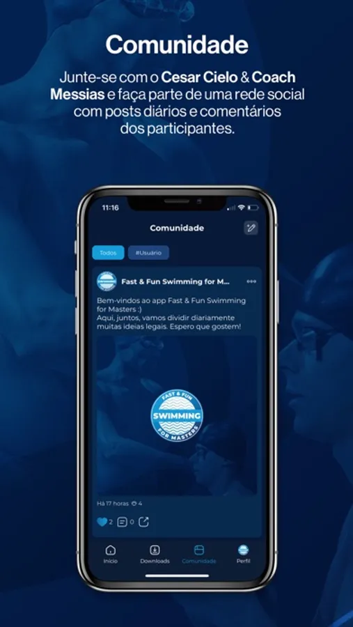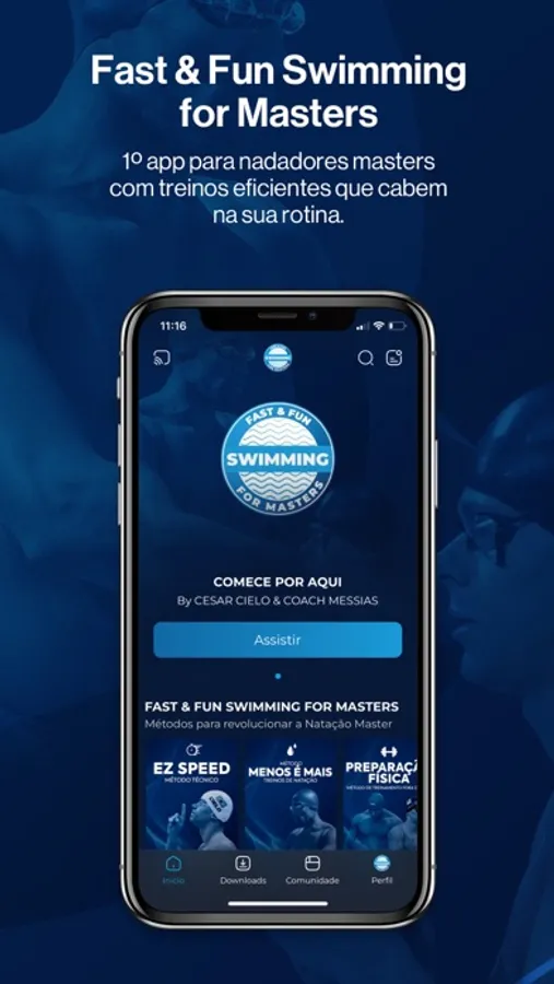 O App que vai revolucionar a Natação Master. Unindo o Método Técnico EZ Speed do Campeão Olímpico, 11x Campeão Mundial e Recordista Mundial, Cesar Cielo, com o Método de Treinamento Menos é Mais desenvolvido por Felipe Messias, Campeão Brasileiro Absoluto, Recordista Mundial Master e Técnico de Natação. Você nunca mais vai treinar sozinho e terá tudo que precisa para nadar mais rápido na palma da sua mão. Dentro do App você vai encontrar Vídeo Aulas sobre Técnicas de Nados e Fundamentos (Saída, Chegada e Viradas), módulos sobre Preparação Física e Mental, vídeo aulas sobre Estrutura de Treinos, Planejamento de Temporada, Tutoriais Específicos de Fundamentos e Materiais de Treino, e tudo aquilo que envolve a Natação, através das experiências do Cesar Cielo e do Felipe Messias. Mas não é só isso. Você terá acesso também a Planilhas de Treinos de Natação de acordo com sua periodização, específicas para provas de 50 e 100m, provas de 200 e 400m e provas de 800 e 1500m, de acordo também com a sua realidade de treinos, pois são planilhas pensadas para diferentes tamanhos de piscina. Além das planilhas de treino de piscina, você também terá acesso a Planilhas de Treinos para Preparação Física, Análises Técnicas periódicas, tudo isso para atingir seus melhores resultados nas mais diversas competições. Não é só teoria, É PRÁTICA. Além de tudo isso, vocês terão contato direto com a equipe especializada por trás do App para solucionar dúvidas e buscar os melhores caminhos e resultados. Somos o primeiro app de treinamento voltado para nadadores Masters, com treinos eficientes, inteligentes e divertidos que cabem na sua rotina. A nossa diversão é NADAR RÁPIDO.