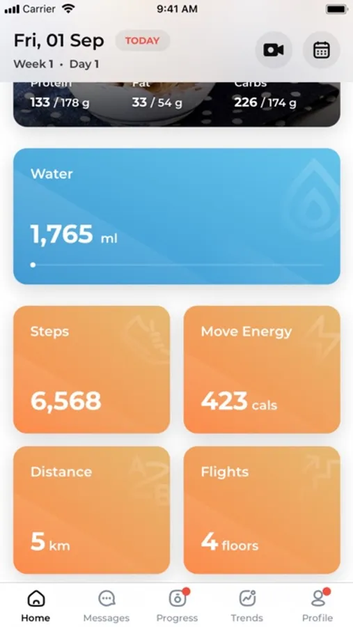 The app integrates with Apple Health to show your daily activity - distance, steps, active energy, and flights to help you better achieve your goals.