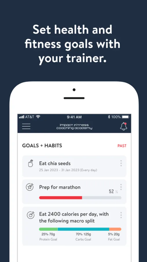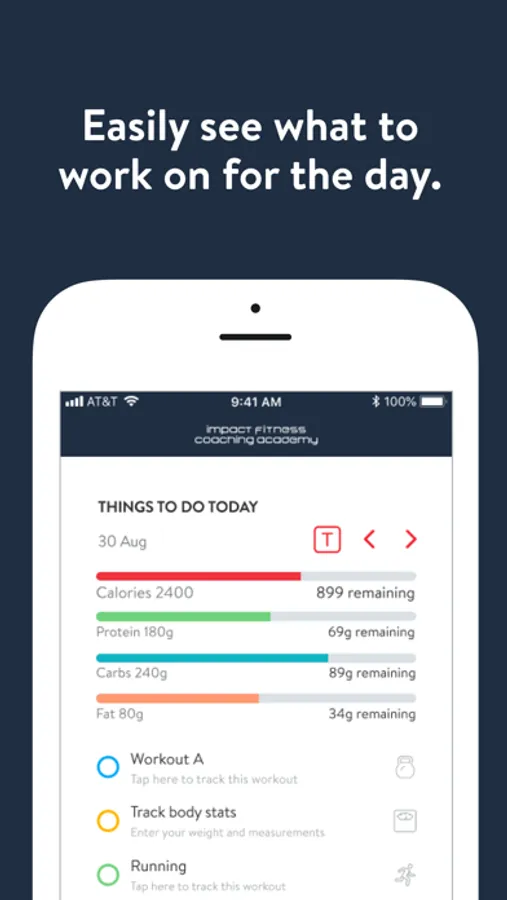 With the Impact Fitness Coach Academy App, you will have access to workout programs designed specifically to help you reach your fitness and health goals! You can follow & track your workouts, your nutrition, your lifestyle habits, measurements, and results–all with the help of your coach.