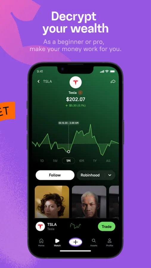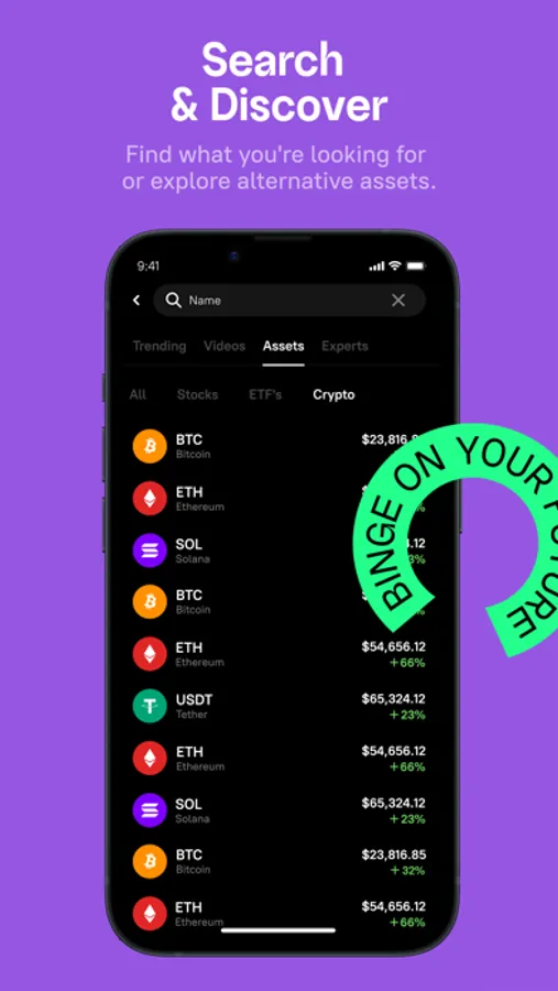 Search, discover and follow assets, stocks, crypto, ETFs and economy news