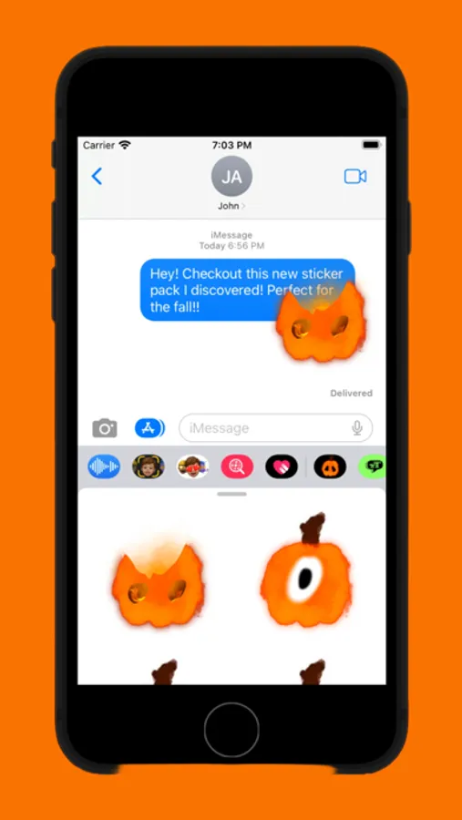So, as you gear up for your fall adventures, don't forget to add a touch of pumpkin magic to your world with the Pumpkin Vibes Sticker Pack. Each sticker is a tiny masterpiece, waiting to help you spread the joy and wonder of the autumn season for your texts. It's the perfect way to start your fall journey, and with over 20 hand-drawn Jack-o'-lantern-inspired stickers at your fingertips, you'll have the tools to create an autumn wonderland wherever you go. Embrace the pumpkin vibes and let the fall season's enchantment unfold before your eyes, one sticker at a time.
