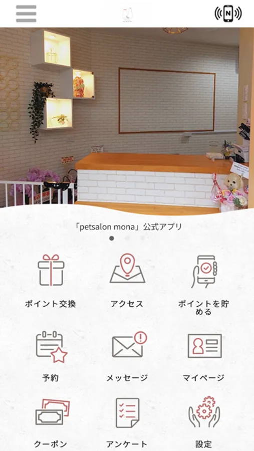 このアプリでは、petsalonmonaの最新情報の受け取りや便利な機能を使う事ができます。