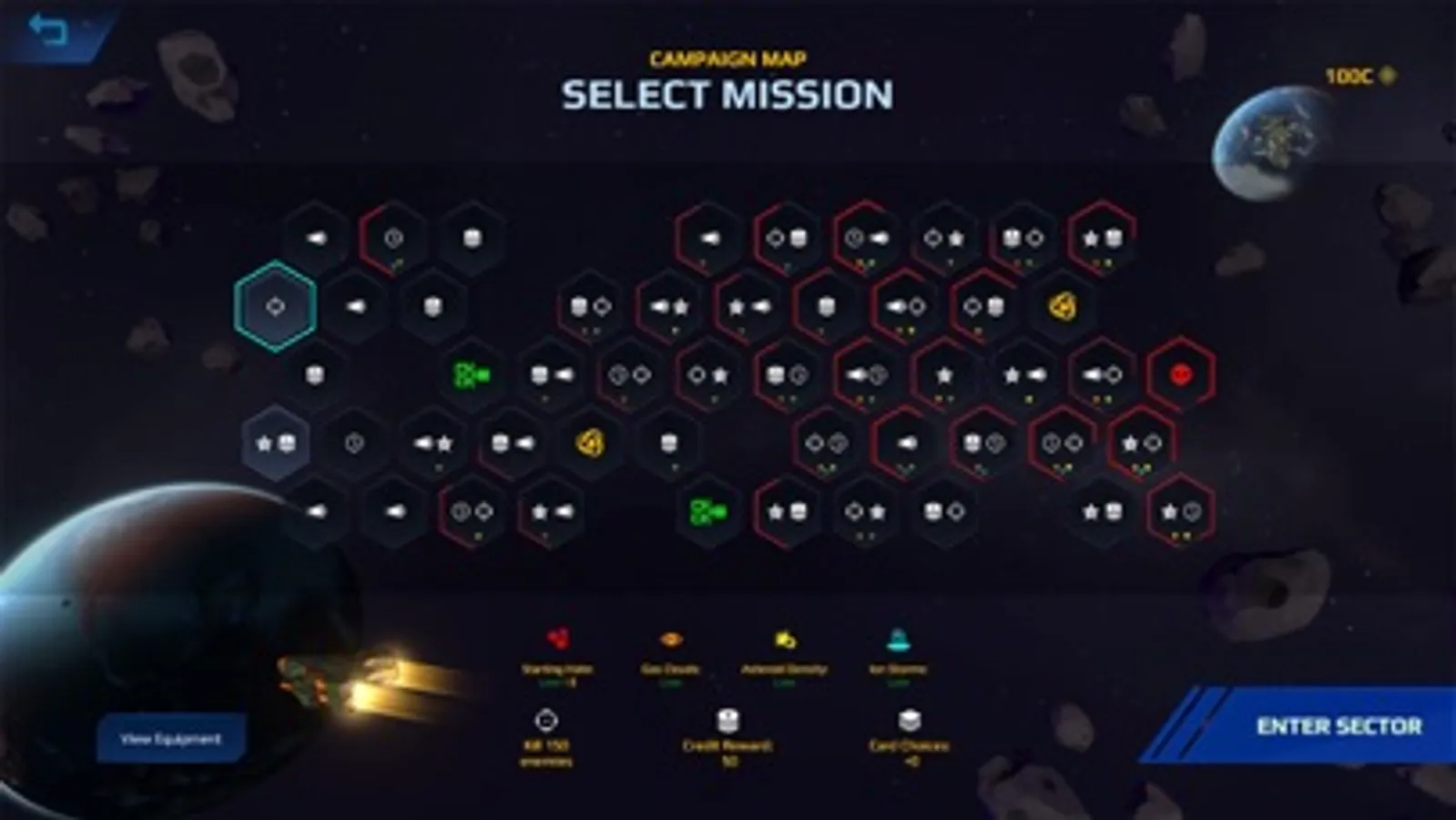 In Campaign adventure mode, choose your path wisely and build your ship as you conquer each sector on your way to slay the Endless Queens.
