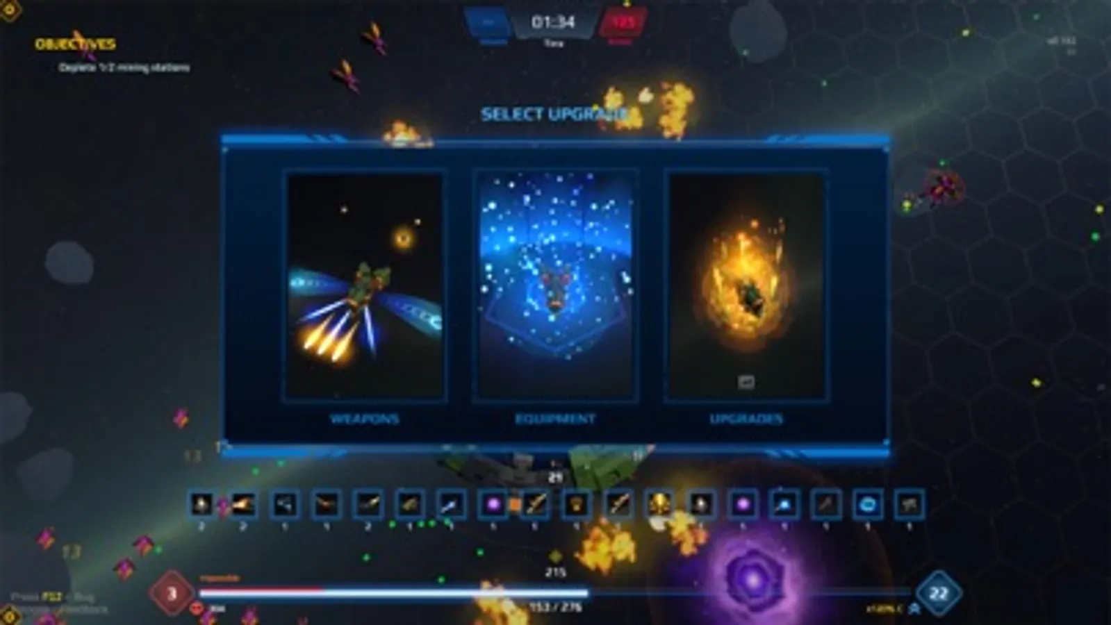 In this rogue-lite survival asteroids game, select from a variety of weapons and upgrades to create unique and overpowered builds every run. Carefully control your ship with Newtonian physics past the swarm of thousands of enemies. Each kill will gain you resources to upgrade your vessel, unlock new ships, or stack the odds in your favor.