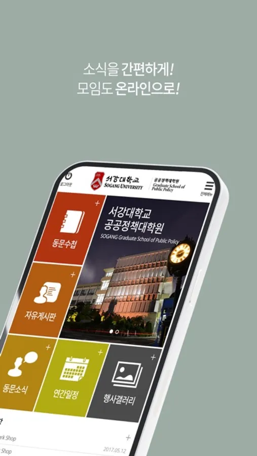 서강대 공공정책대학원 동문회 소식과 동문 정보를 열람할 수 있는 모바일 수첩 어플리케이션입니다.
