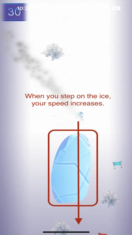 Stepping on ice panels will increase your speed. However, be cautious as it can sometimes make you too fast.