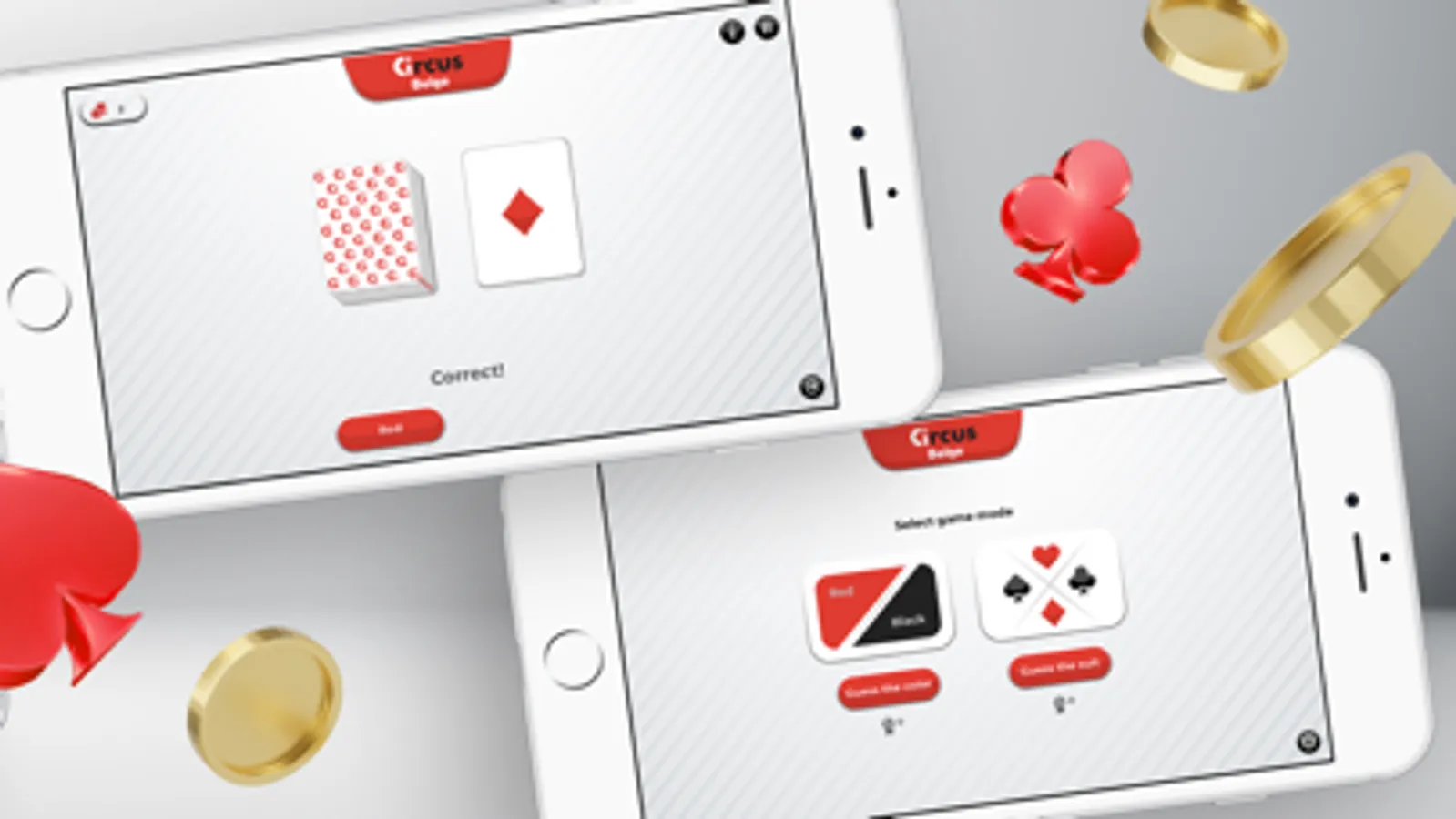 En el primer juego, tu tarea consiste en adivinar el color de una carta: ¿será roja o negra? En el segundo juego, desafíate a ti mismo a predecir el palo de la carta: corazones, diamantes, tréboles o picas. Cada acierto te da puntos: adivinar el color te da dos puntos y acertar el palo te da cuatro.