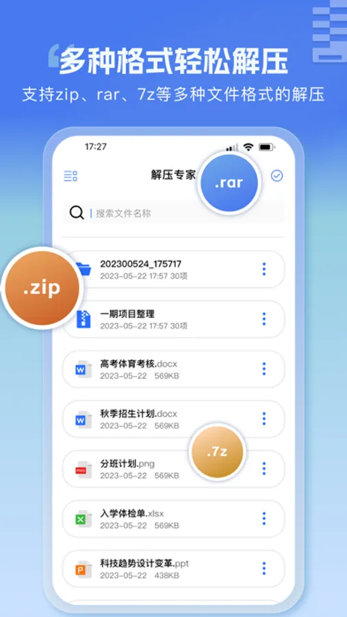 【多种压缩格式轻松压缩解压】 支持zip、rar、7z等多种文件格式的解压