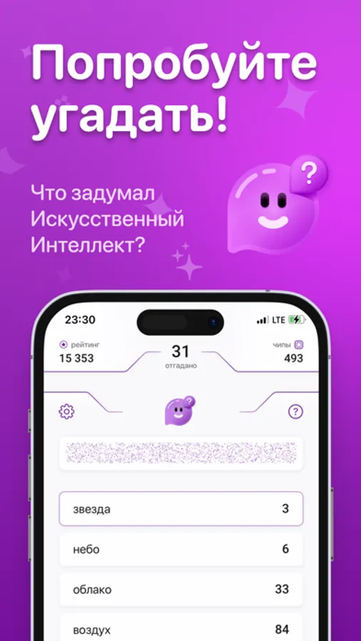 Увлекательная словесная игра, где Искусственный Интеллект загадывает слово, которое нужно угадать.