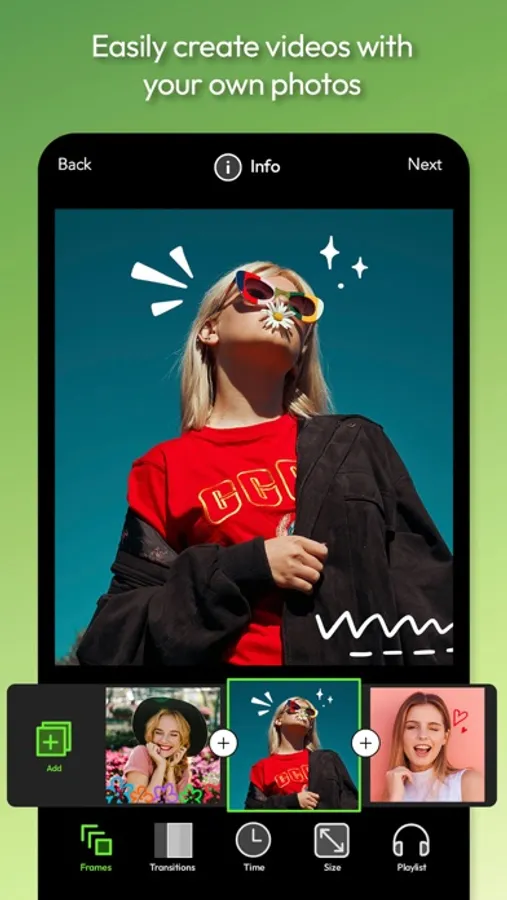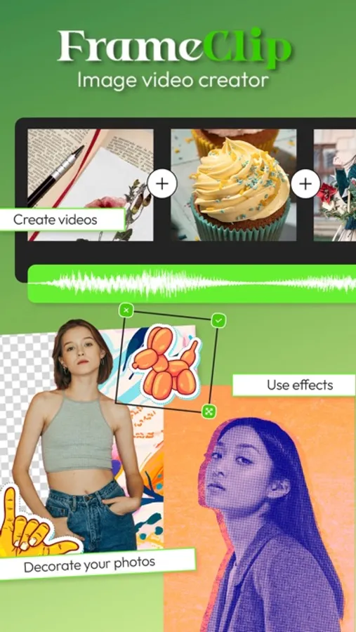 Create captivating animated slideshow videos with the addition of music and stunning effects. Enhance your photos by including stickers and text messages. Utilize our user-friendly movie editing app to craft imaginative videos.