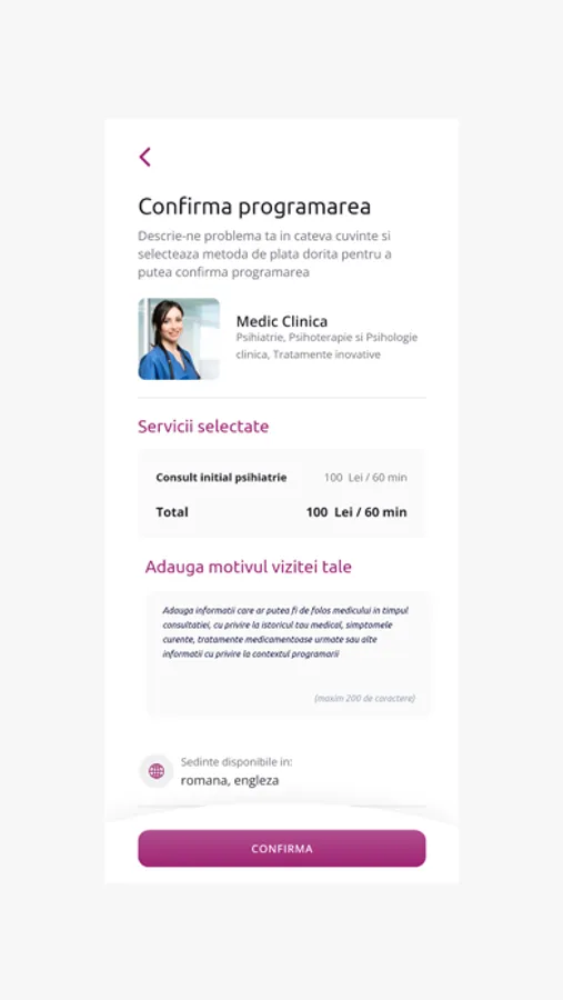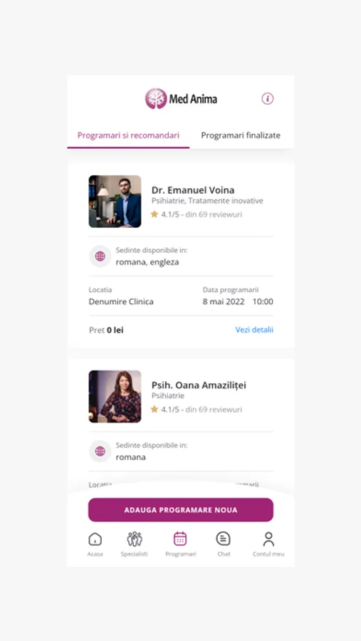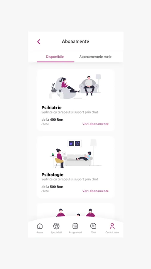 Folosește chat-ul integrat pentru a menține legătura cu medicul / psihoterapeutul tău - primești recomandări valide, în timp real de la specialiști.