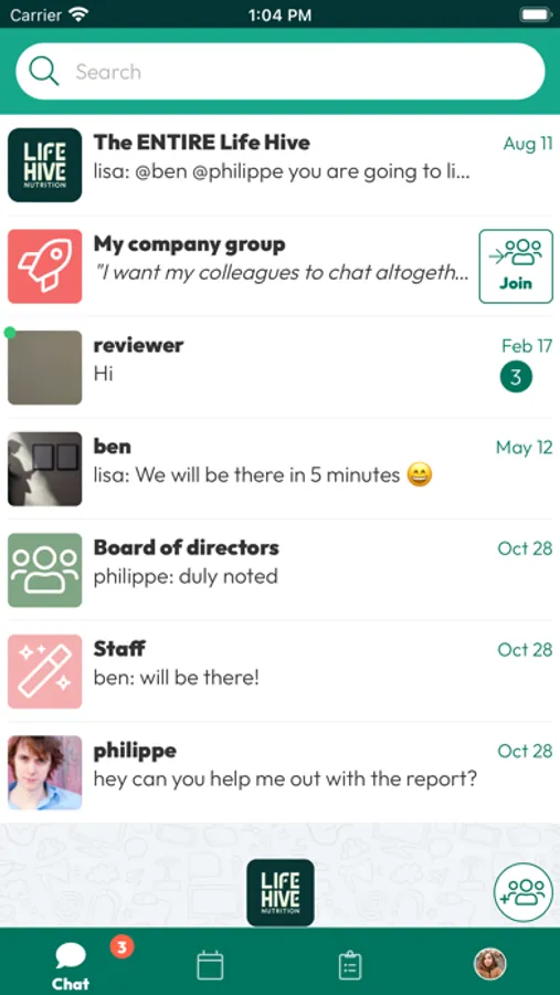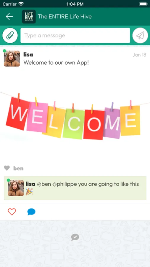 Secure messaging and support for the LIFE HIVE Nutrition Community