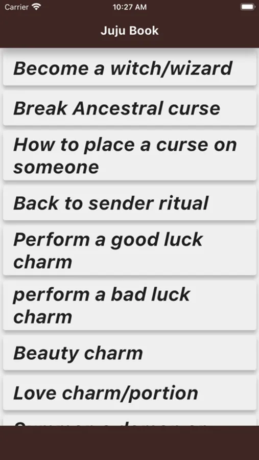 Juju book is a spiritual, traditional and religious book that contains information of old traditional and cultural juju practices in Africa. This Free app has been created from the knowledge old spiritual native doctors, witches and wizards.