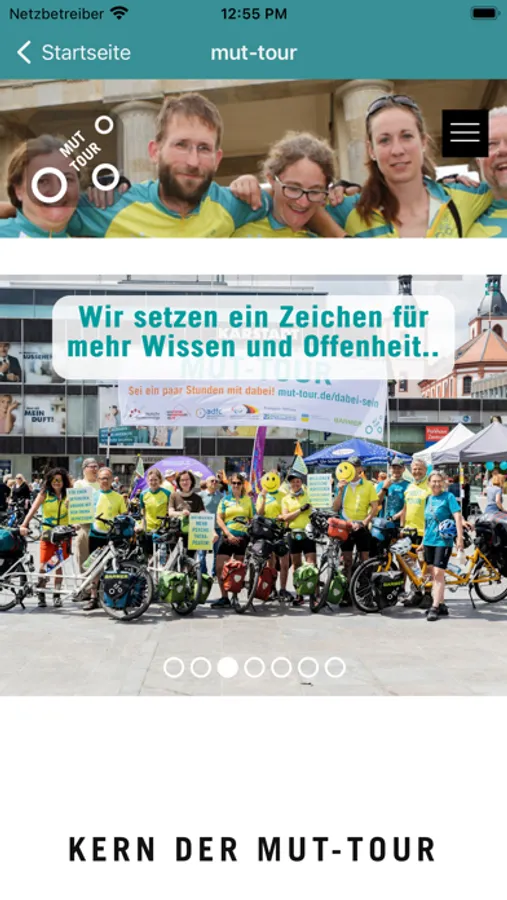 Die MUT-TOUR ist ein Aktionsprogramm, bei dem sich Menschen mit und ohne Depressionserfahrung auf Tandem-Fahrrädern und zu Fuß in Pferdebegleitung durch ganz Deutschland bewegen. Unterwegs sprechen sie mit Menschen am Wegesrand sowie Pressevertreter:innen über ihre Erfahrungen mit der Krankheit und setzen so ein deutliches Zeichen für einen offenen Umgang mit Depressionen. Wer teilnehmen möchte, kann sich an kontakt@mut-tour.de wenden.