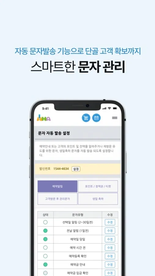 번거로운 예약관련 문자 발송을 자동화하여 쉽고 편하게 관리해보세요.