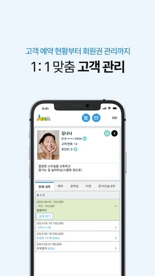 ● 아하소프트 플러스는 헤어샵, 네일샵, 피부샵, 왁싱샵, 마사지샵, 애견샵 및 기타 뷰티샵 관리에 최적화 된 고객관리 프로그램입니다.
