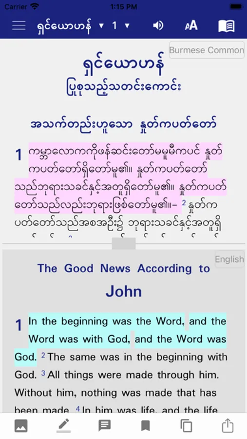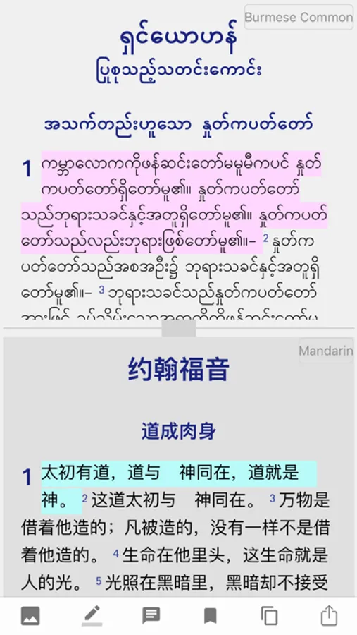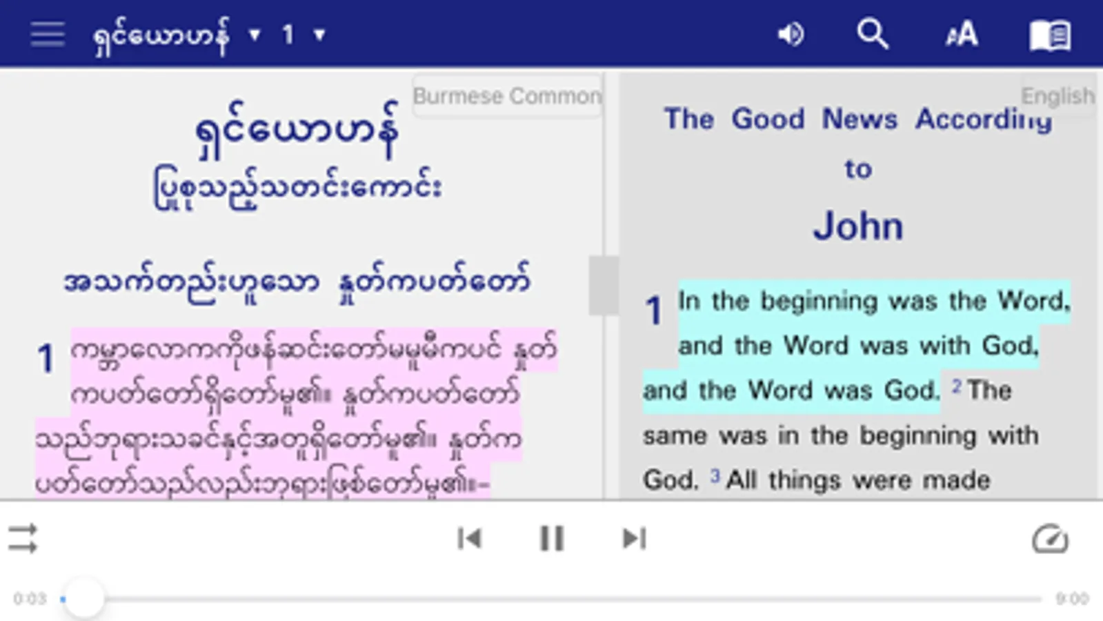This app contains the Word of God in several languages: 1) Burmese, 2) English, 3) Mandarin