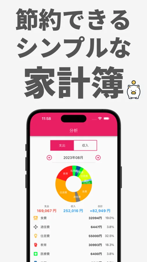 ・固定収支機能で繰り返し収支データ(固定費)の自動入力に対応!